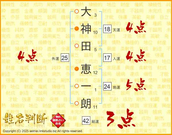 大神田恵一朗さんの人運は17画の4点!
