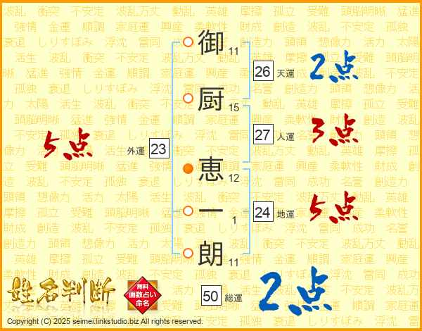 御厨恵一朗さんの総運は50画の2点!