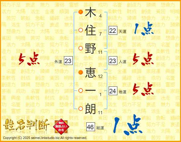 木住野恵一朗さんの地運は24画の5点!