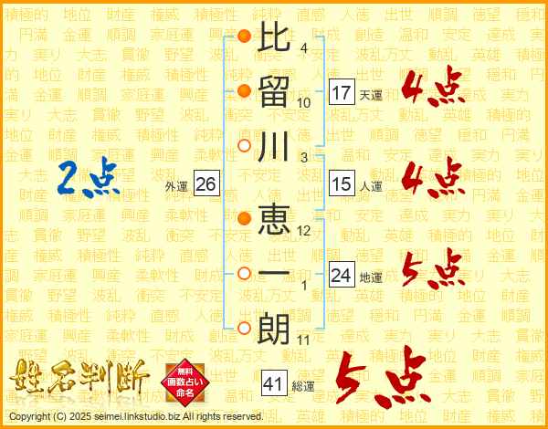 比留川恵一朗さんの総運は41画の5点!