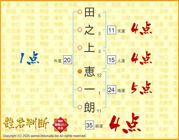 田之上恵一朗さんの天運は11画の4点!