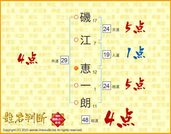 磯江恵一朗さんの天運は24画の5点!