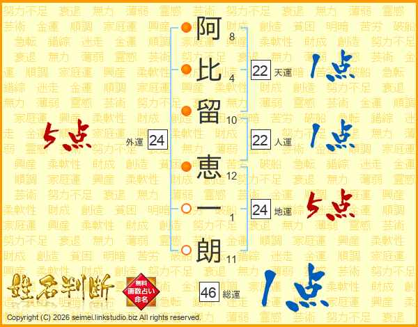 阿比留恵一朗さんの総運は46画の1点!