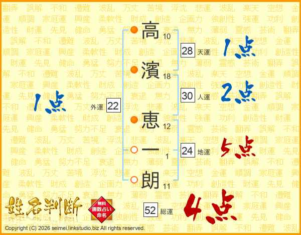 高濱恵一朗さんの総運は52画の4点!