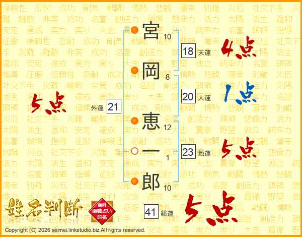 宮岡恵一郎さんの総運は41画の5点!