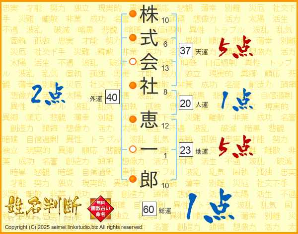 株式会社恵一郎さんの総運は60画の1点!