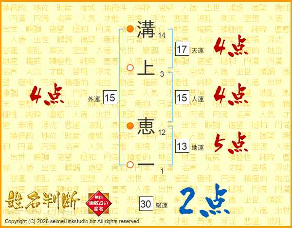 溝上恵一さんの天運は17画の4点!