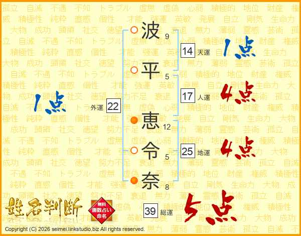 波平恵令奈さんの総運は39画の5点!