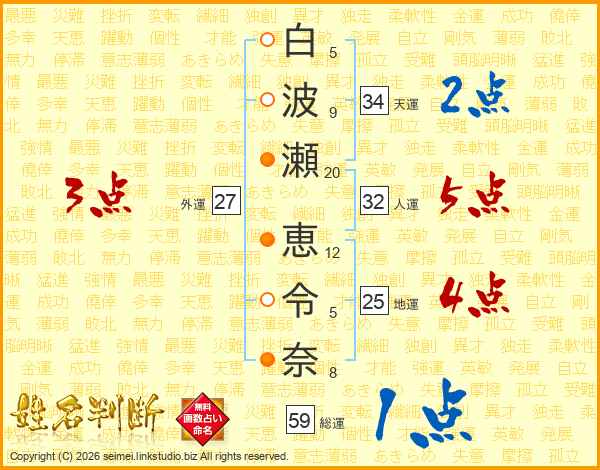 白波瀬恵令奈さんの総運は59画の1点!