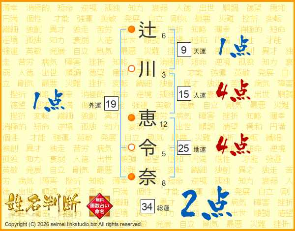 辻川恵令奈さんの総運は34画の2点!