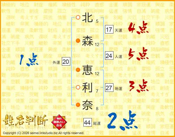 北森恵利奈さんの総運は44画の2点!