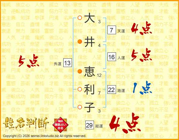 大井恵利子さんの総運は29画の4点!
