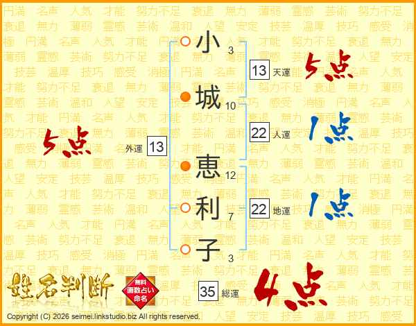小城恵利子さんの外運は13画の5点!