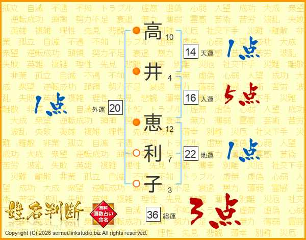 高(10画)井(4画) 恵(12画)利(7画)子(3画)