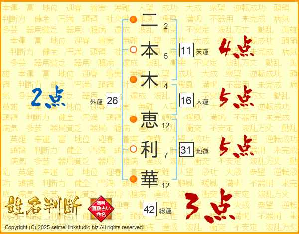 二本木恵利華さんの天運は11画の4点!