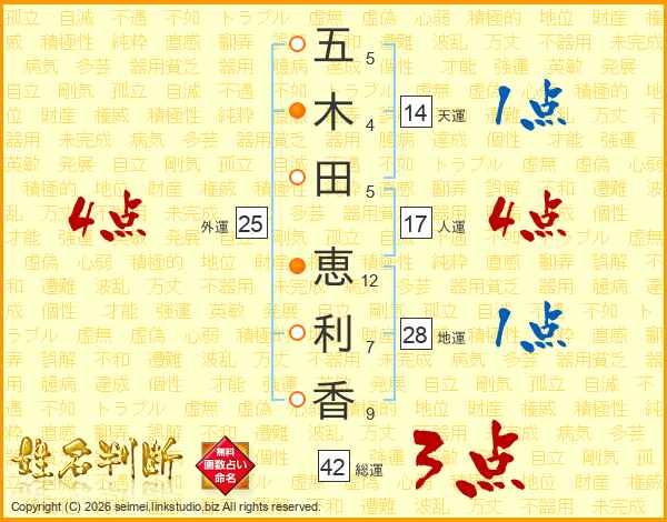 五木田恵利香さんの総運は42画の3点!