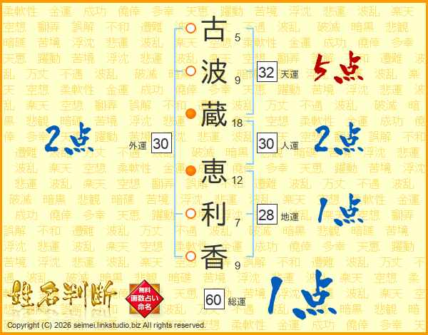 古(5画)波(9画)蔵(18画) 恵(12画)利(7画)香(9画)