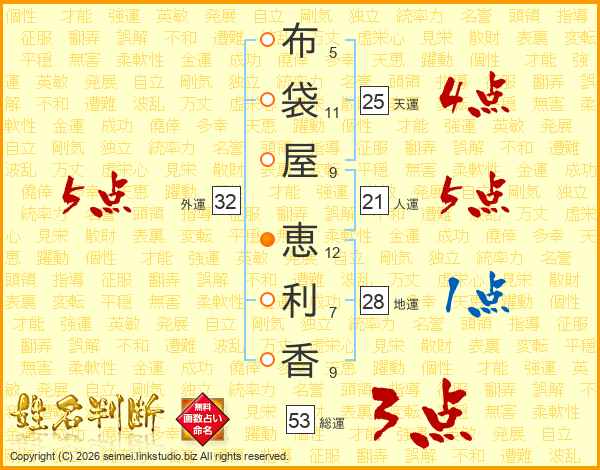 布袋屋恵利香さんの総運は53画の3点!
