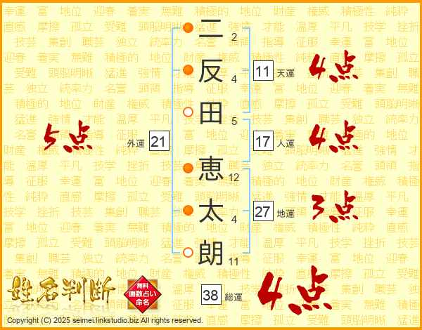 二反田恵太朗さんの総運は38画の4点!