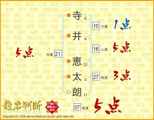 寺(6画)井(4画) 恵(12画)太(4画)朗(11画)
