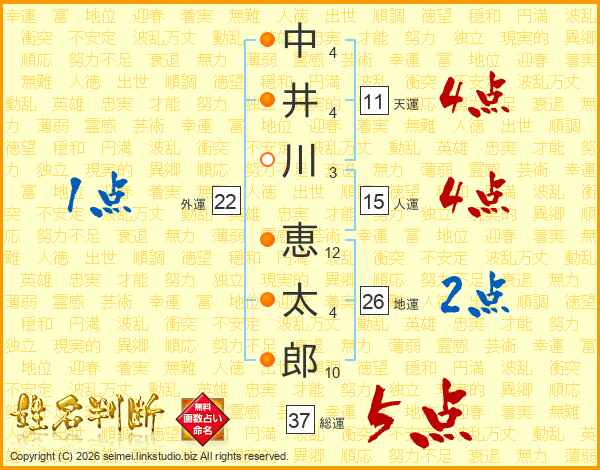 中井川恵太郎さんの総運は37画の5点!
