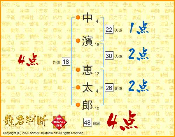 中濱恵太郎さんの総運は48画の4点!