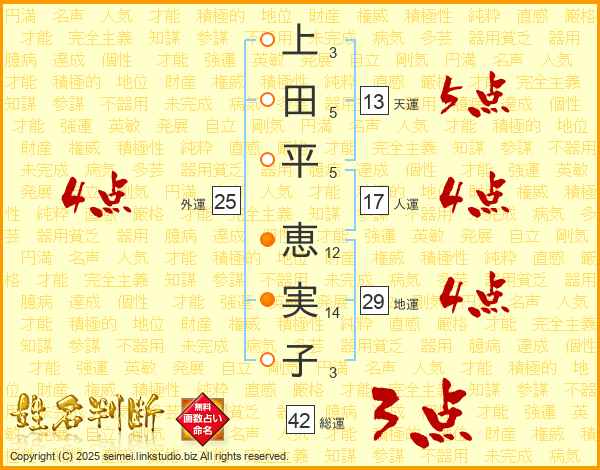 上田平恵実子さんの天運は13画の5点!