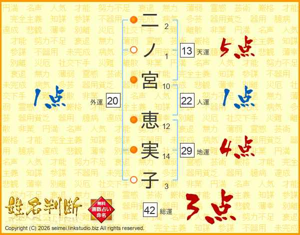 二ノ宮恵実子さんの総運は42画の3点!