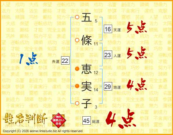 五條恵実子さんの総運は45画の4点!