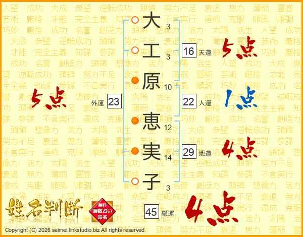大工原恵実子さんの総運は45画の4点!