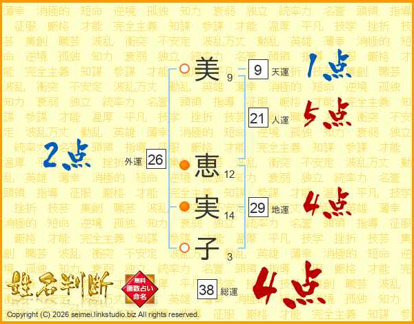 美恵実子さんの総運は38画の4点!