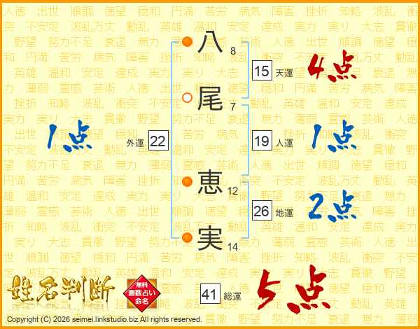 八尾恵実さんの総運は41画の5点!