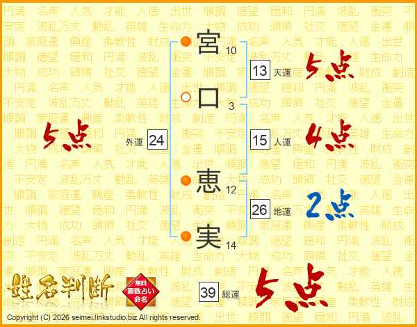 宮口恵実さんの外運は24画の5点!