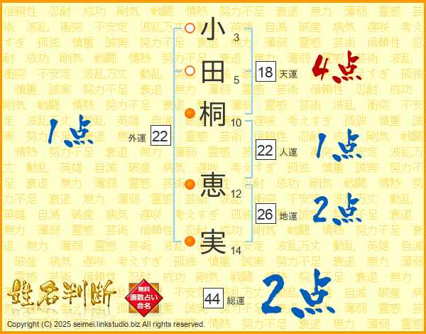 小田桐恵実さんの総運は44画の2点!
