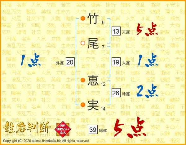 竹尾恵実さんの総運は39画の5点!