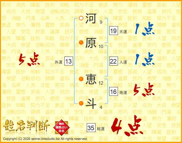 河原恵斗さんの総運は35画の4点!