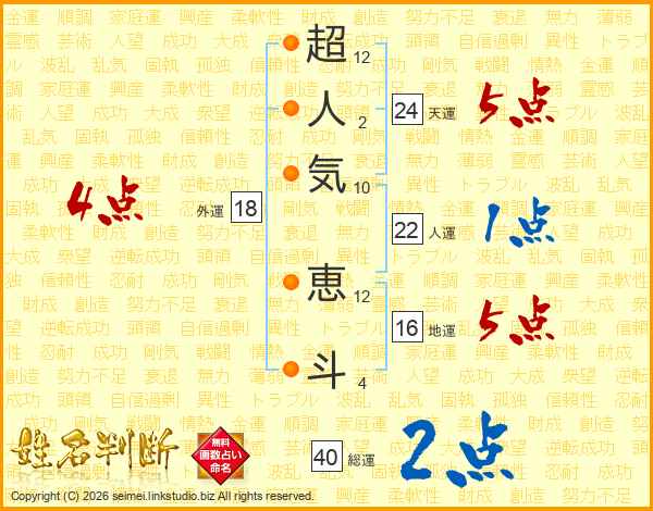 超人気恵斗さんの総運は40画の2点!