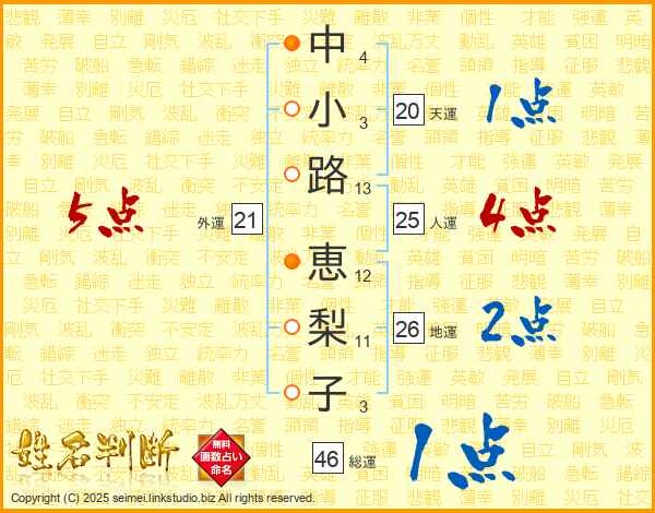 中小路恵梨子さんの人運は25画の4点!