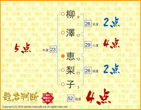 柳澤恵梨子さんの総運は52画の4点!