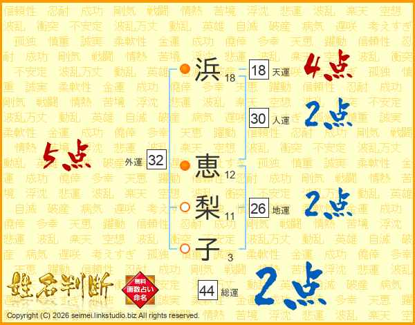 浜恵梨子さんの総運は44画の2点!