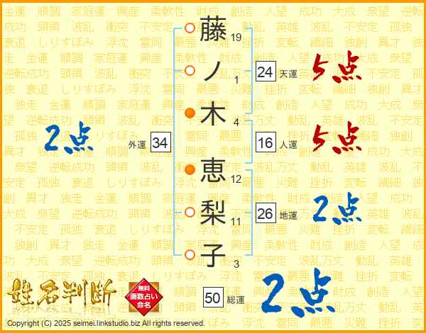 藤ノ木恵梨子さんの総運は50画の2点!