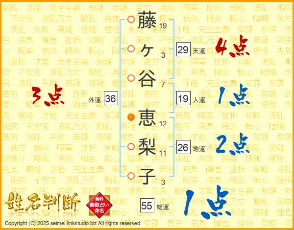 藤ヶ谷恵梨子さんの天運は29画の4点!