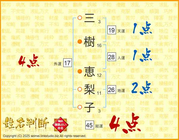 三樹恵梨子さんの外運は17画の4点!