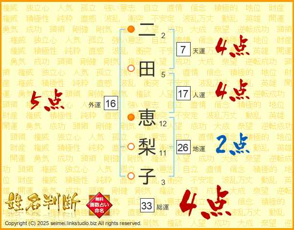 二田恵梨子さんの総運は33画の4点!