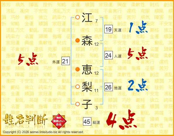 江森恵梨子さんの総運は45画の4点!