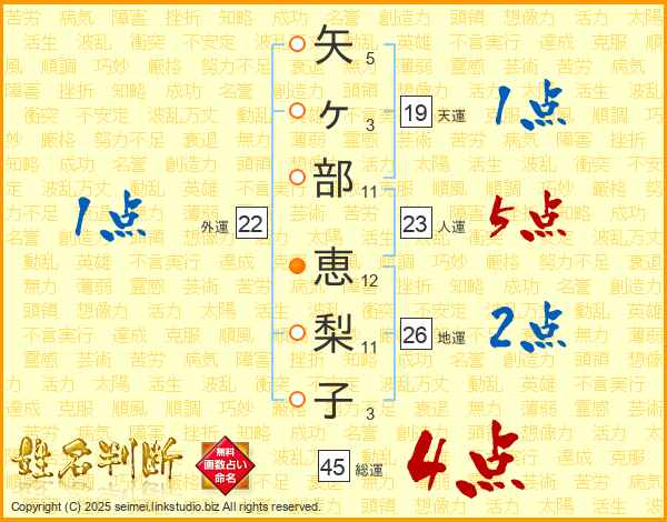 矢ヶ部恵梨子さんの総運は45画の4点!