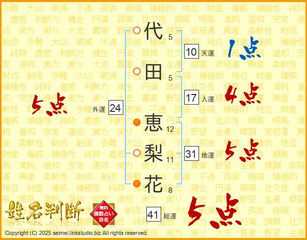 代田恵梨花さんの総運は41画の5点!