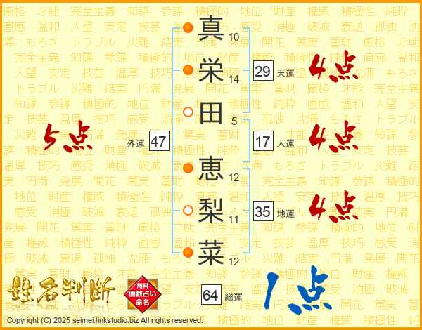 真栄田恵梨菜さんの外運は47画の5点!