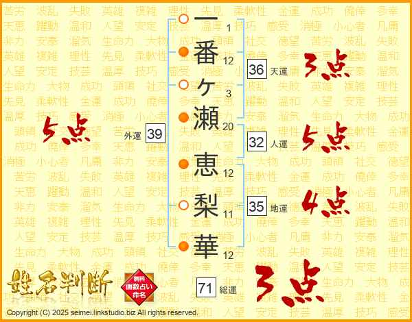 一番ヶ瀬恵梨華さんの外運は39画の5点!
