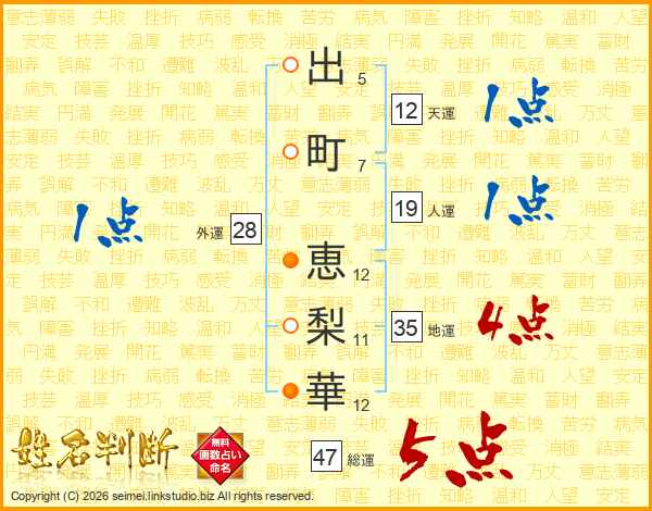 出町恵梨華さんの総運は47画の5点!